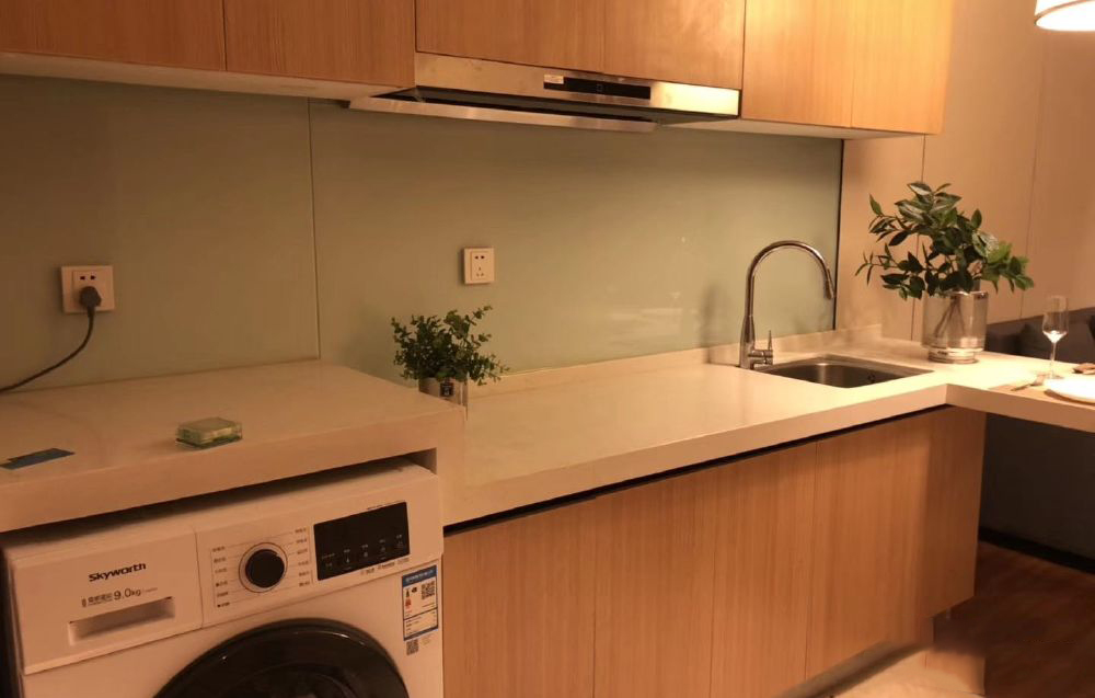 1、基本配置:精装修,双人床,衣柜,电脑桌,凳子,冰箱,全自动洗衣机,24热水。